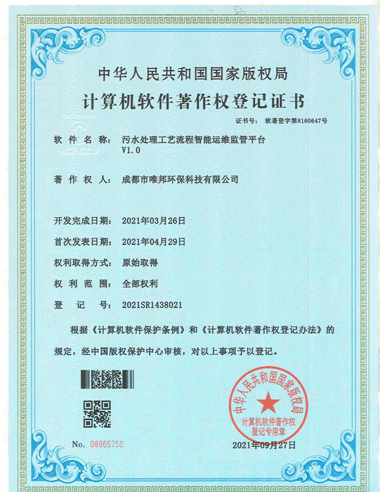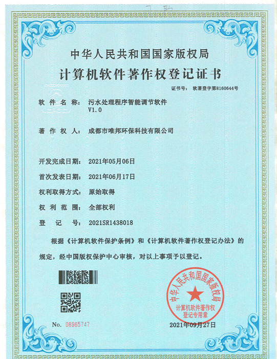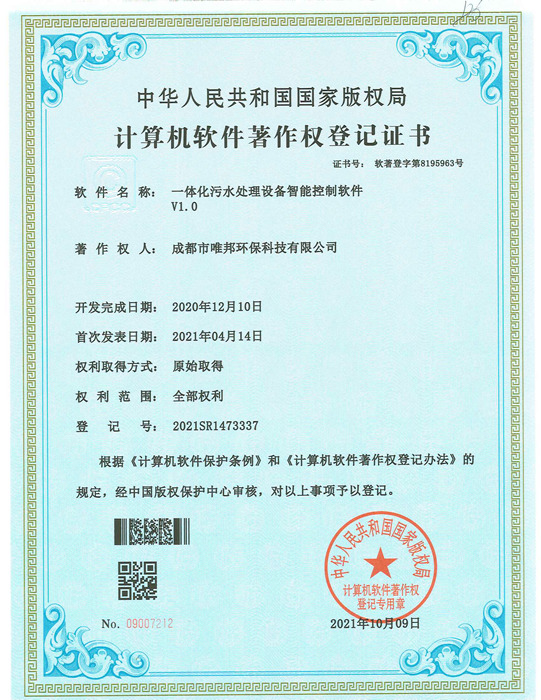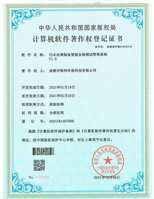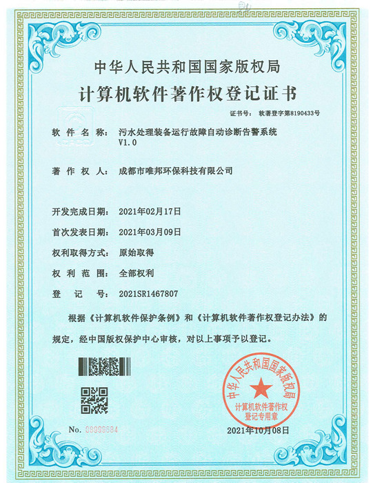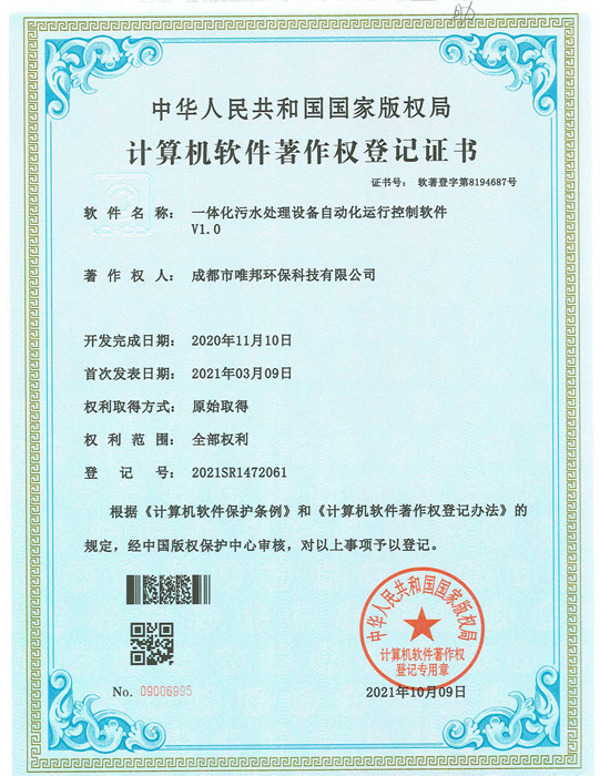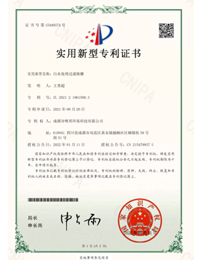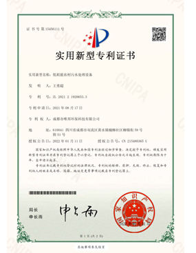 低耗能農(nóng)村污水處理設(shè)備-證書(shū)