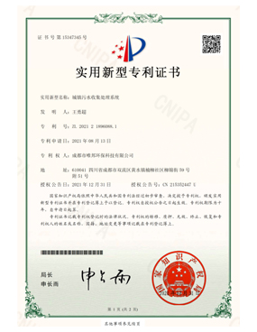城鎮(zhèn)污水收集處理系統(tǒng)-證書(shū)